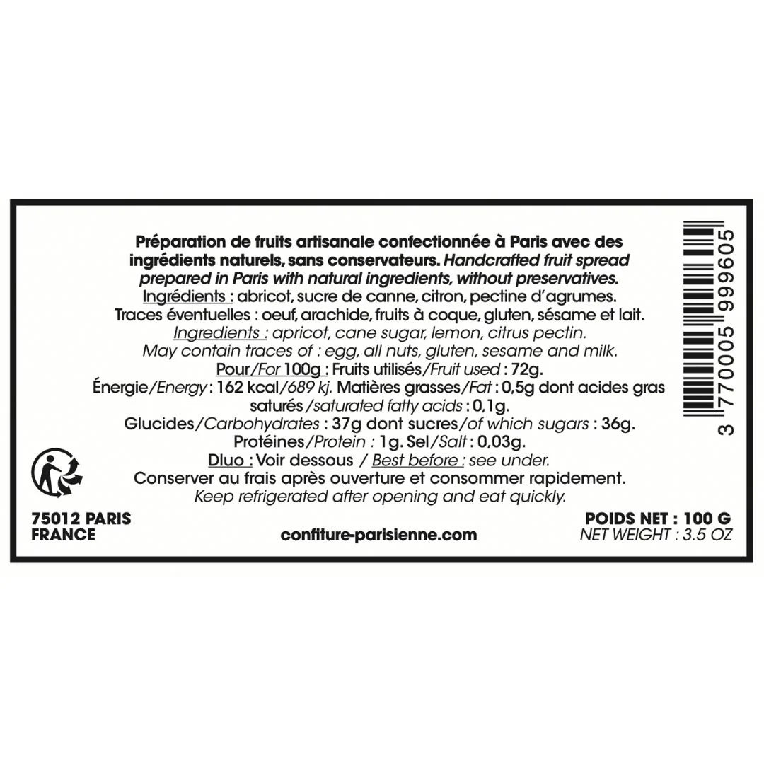 手工製作於巴黎唯一果醬工廠,延續2015年創立的傳統工藝,每罐100g 含高達65%水果,糖分較低,成分簡單:杏子、非精製蔗糖、檸檬與柑橘果膠,完全自然無添加。適合塗抹在塗了奶油的鄉村麵包上,配以新鮮橙汁,帶來晨間的幸福饗宴。探索這款果醬,不僅品味法國風情,更感受果實的真摯情感。